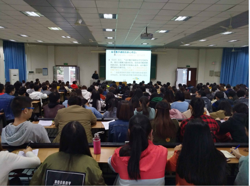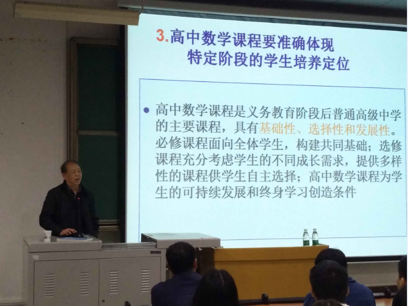 3月28日下午,重庆师范大学原副董事长、博士生导师、教育部《国家课程标准》研制专家组成员、国家中小学教材审定审查委员黄翔教授莅临公司做题为:《高中数学课程标准(2017年版)》解读的专题讲座。黄翔教授围绕培养什么样的人、怎样培养人这一主线,详细解读了高中数学课标修订的背景与意义、高中数学课程的性质、高中数学课程的基本理念、高中数学课程内容的设置、数学核心素养的内涵。黄翔教授特别指出,未来高中数学部分选修课程要与音乐、美术、体育等学科交叉融合,这对大学师范教育提出了新的挑战,他殷切的希望员工们能努力学习,不断提升自己素养,为适应未来数学教育挑战作好准备,讲座中黄翔教授还回答了部分师生提出的问题。数学与财经公司2014级、2015级、2016级师范专业员工以及数学系部分教师参加了讲座,讲座让与会师生领略到了黄翔教授的知识渊博和学术魅力,了解了中小学数学教育的前沿内容。