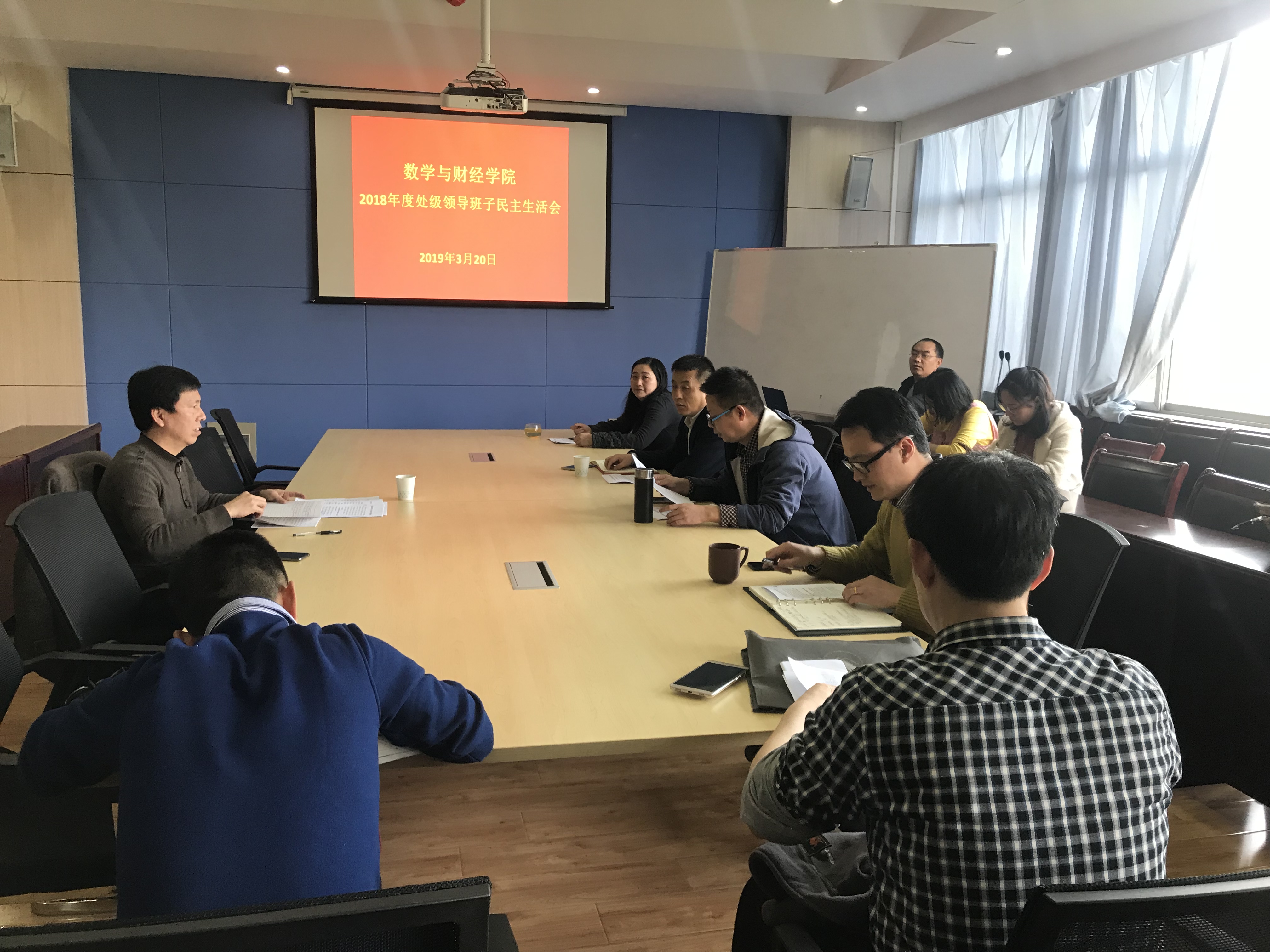党总支书记余大鹏首先做了动员讲话并代表班子做对照检查。随后班子成员逐一做了对照检查并开展了批评和自我批评。教工部长周洪亮做了总结讲话,充分肯定了本次民主生活会准备充分、形式规范,是一次成功的民主生活会;肯定了班子成员能直面为题,批评和自我批评能见人见事见思想见作风;他希望数学与财经公司能认真梳理、建立台账、扎实整改,能夯实基础、强化管理、适应发展,能凝聚力量、整合资源、创新突破。最后余大鹏书记代表班子表态将严格按照公司要求、周洪亮部长所提意见和建议扎实整改,力争2019年党建有突破,教学有成效,科研有作为,用成绩来回应本次民主生活会。