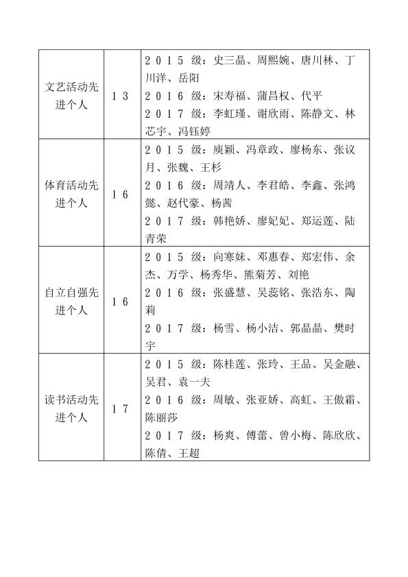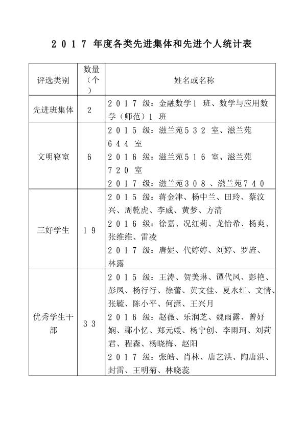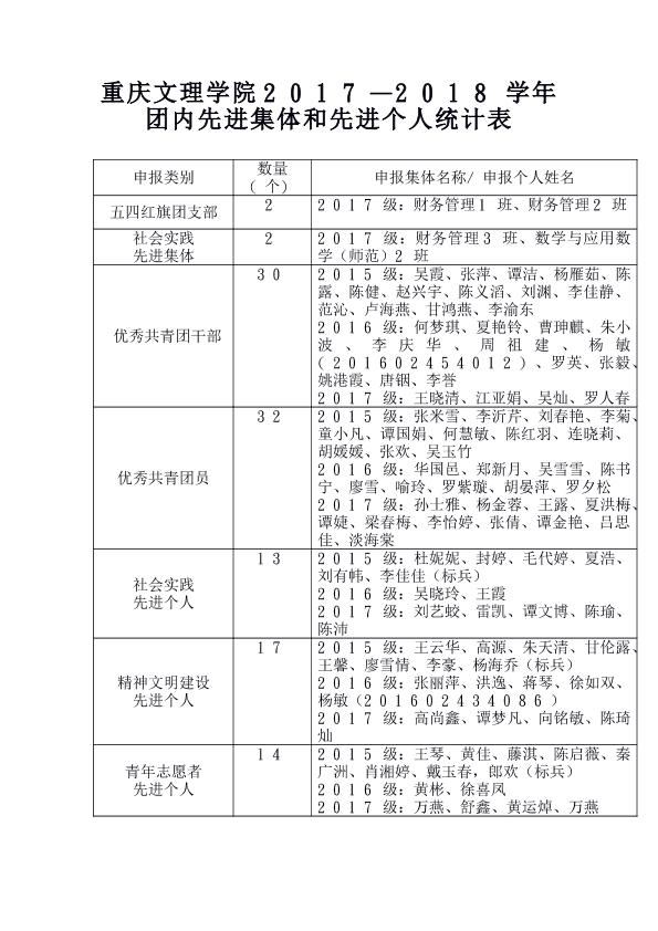 太阳成集团tyc151cc2017—2018学年团内先进集体和先进个人统计表