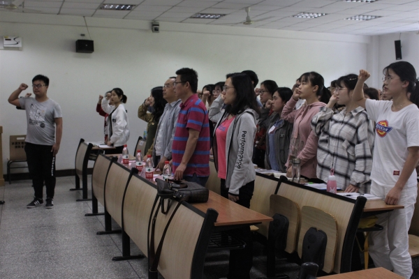 4月21日上午9:00,学员们在知津楼D205参加了本次团校开班典礼。在大家齐唱了中国共青团团歌后,雷袁鑫带领全体学员重温入团誓词。随后,李虹瑾为学员宣读了本次团校的管理办法以及相关要求。宣读结束,主持人李星翰就团校课程安排进行了介绍。之后,余大鹏为本次团校开班致辞,并向员工代表授旗,宣布团校正式开始。