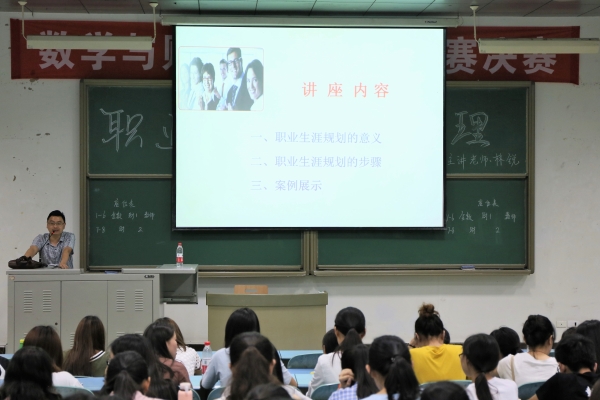 讲座上,林锐老师从职业生涯规划的意义、步骤和案例展示三个方面阐述了该如何做好职业生涯规划管理。为了使同学们更好的理解,他结合实际,细致耐心的讲解了每一个步骤,他强调,思想决定行动,不光要想,更要有实际行动,在择业的时候,要知己知彼才能选择出最适合自己的职业。