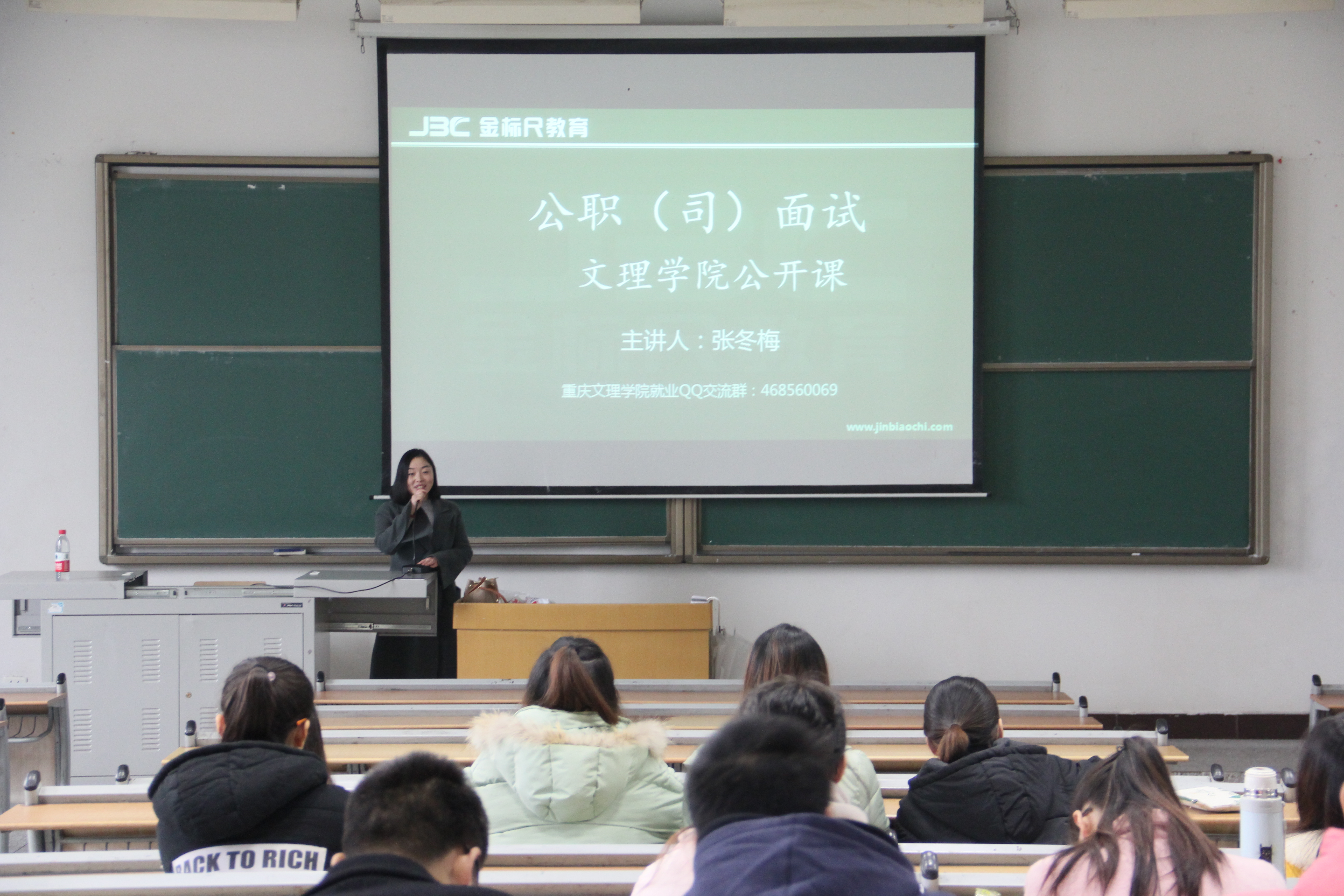 讲座开始,张冬梅首先用提问的方式引导同学们走进今天的主题,风趣幽默的语言充分调动了同学们学习的积极性。然后她一边讲解一边举例,为同学们阐述了公职面试和公司面试的概念以及区别。公职面试大多采用结构化和无领导小组讨论两种方式进行考核,更具有严格性标准性,所以公职面试多适用于国考、省考、三支一扶、村官等;而公司面试多采用半结构化的形式,半结构化面试具有双向沟通性,可以获得比面试材料更为丰富、完整和深入的信息,更具灵活性。讲座最后,张冬梅还带领同学们进行现场模拟,让同学们在 切实的体验中,了解面试,了解自己,从而给同学们积累下一份宝贵的面试经验。