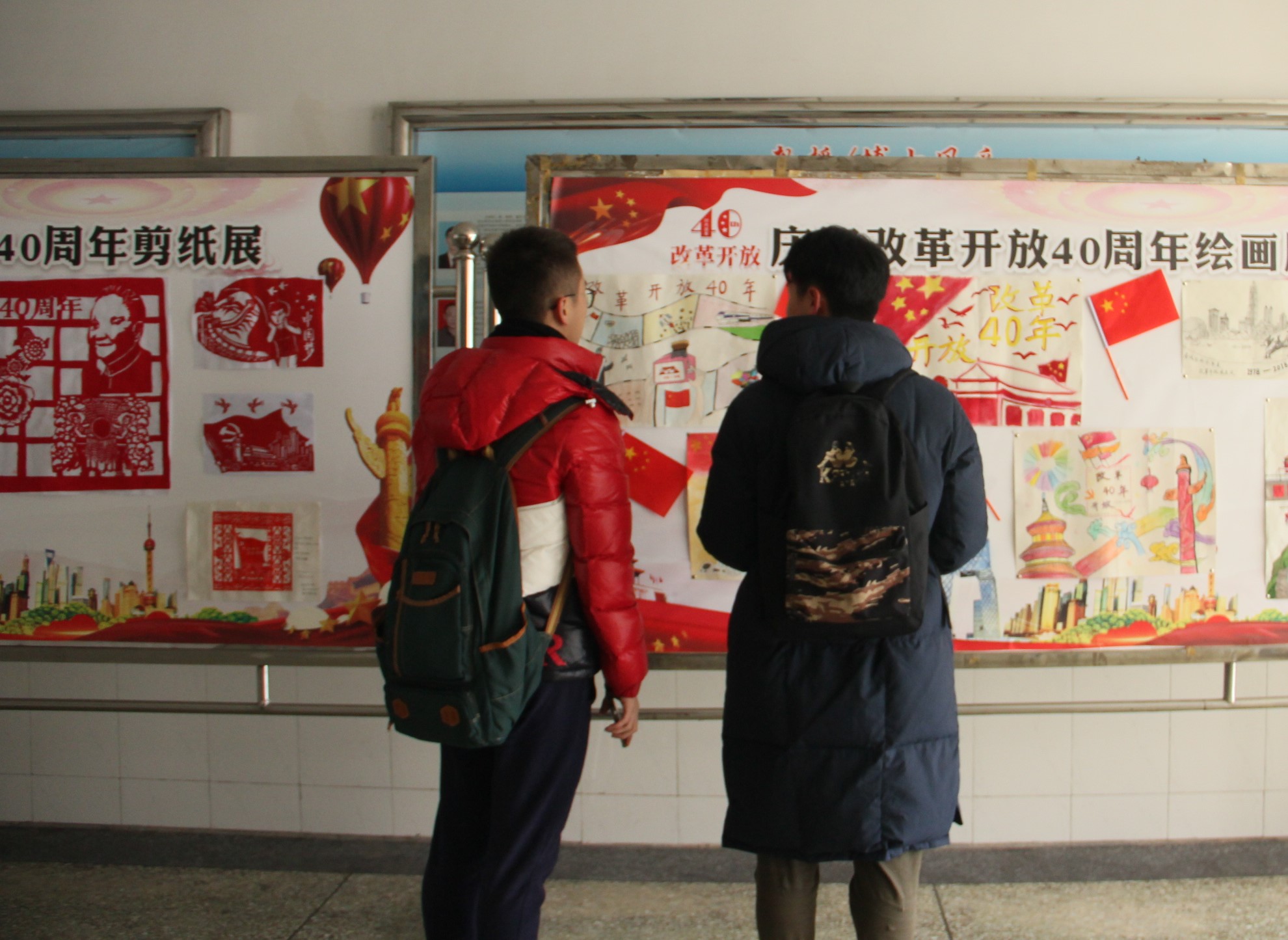 本次展览共展出作品35份,其中包括以庆祝改革开放40周年为主题的剪纸、海报、摄影、绘画和书法等。每一幅作品都别具一格,凝聚着参赛选手们的智慧和心血,传递着满满的正能量,也展示着新时代新青年不忘初心、砥砺前行的良好精神风貌,使得许多老师和同学驻足观看。尽管这些作品难以完整地反映改革开放40年波澜壮阔的历史过程,但是它们将改革开放40年伟大变革中具有代表性的人、事、物都展现了出来。透过作品,大家依然能从不同角度、不同层面感受到改革开放40年来发生的巨大变化。