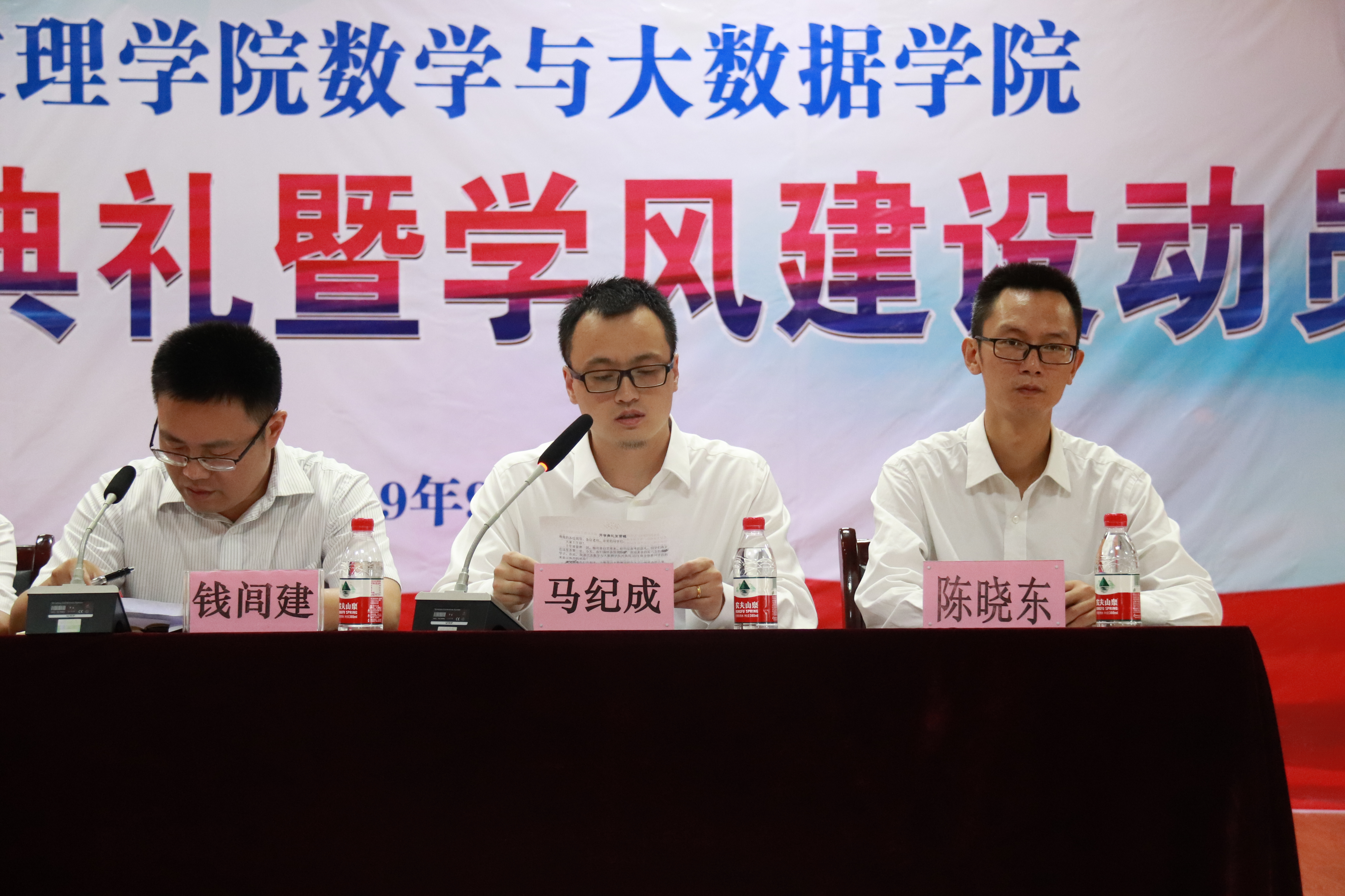 黄华副书记宣读了学风建设实施方案,要求同学们做足学习准备,净化学习环境,提高学习效率,保障学习效果。2018级张誉嘉同学代表院级员工组织宣读了学风建设倡议书,倡议同学们积极参加“书包进教室,手机离课堂”学风建设活动;2019级新生代表简银迎代表全体新生宣读了学风建设承诺书,明确表示将严格执行公司公司各项规章制度,积极参加学风建设,真正创造我是学风建设参与者,我是学风建设贡献者,我是学风建设受益者的良好局面。