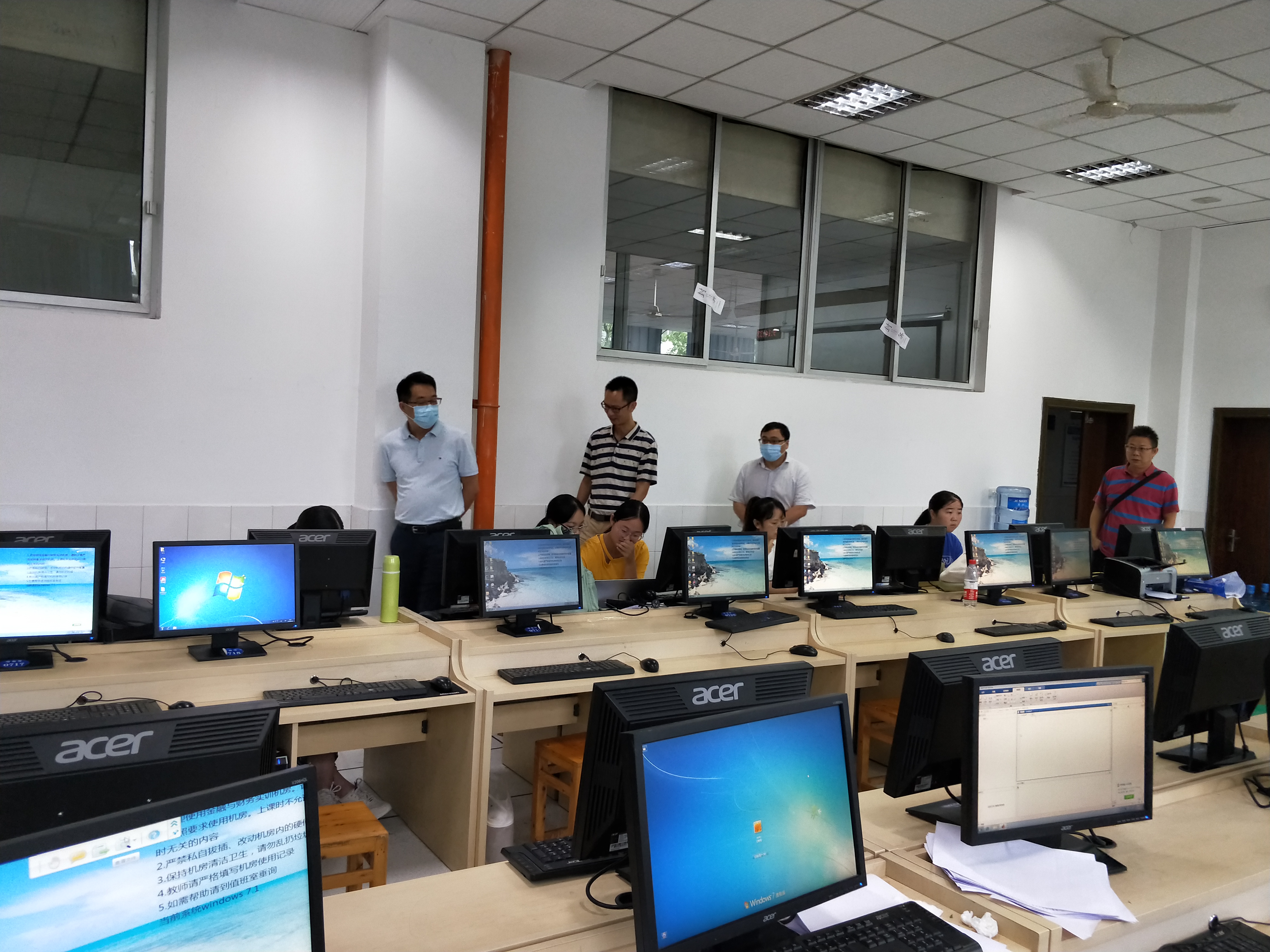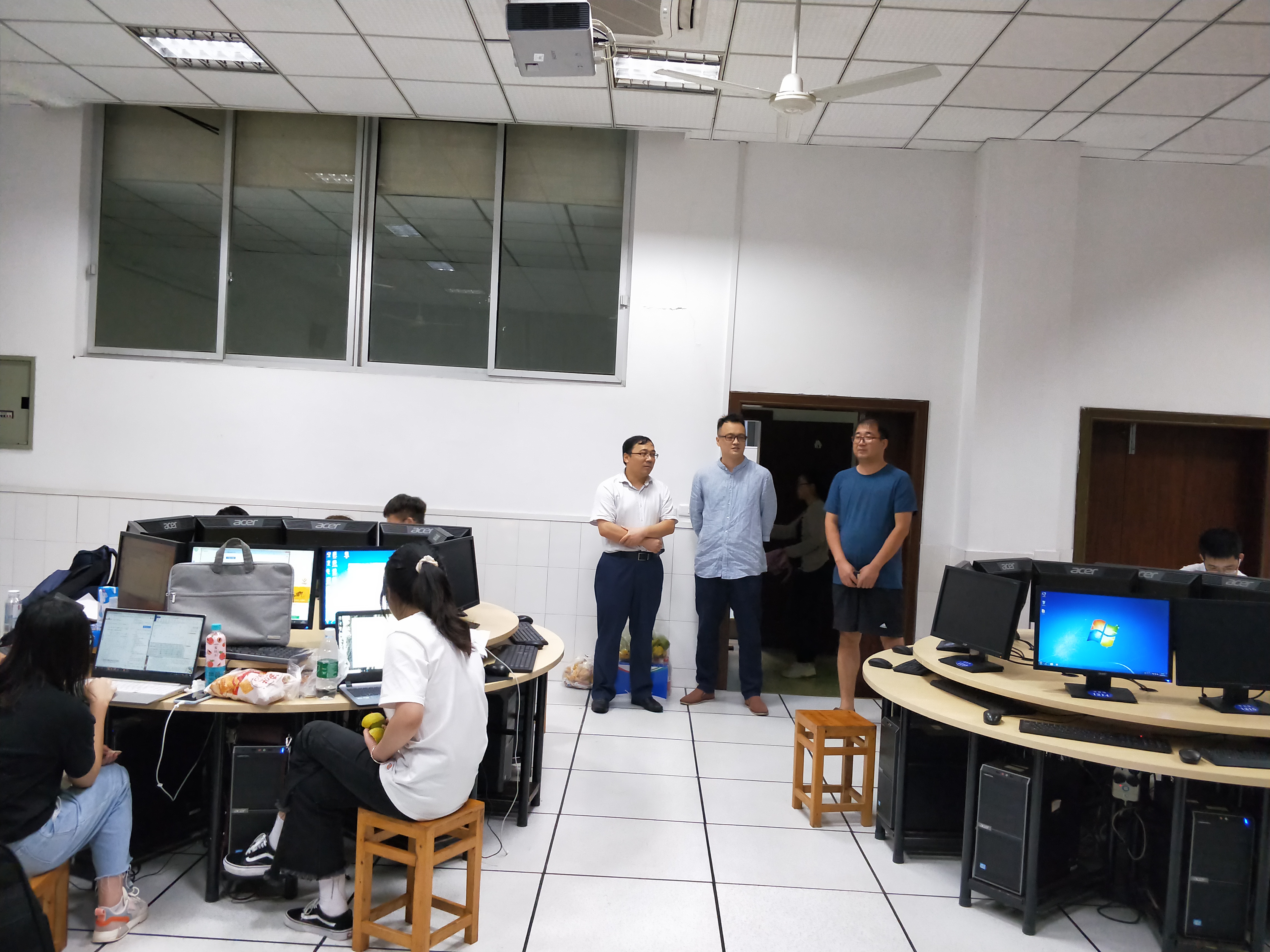 2020年9月12日,副董事长漆新贵,在教务处处长王东强,数学与大数据公司执行经理马纪成,副经理陈晓东的陪同下,深入大数据实训中心全国老员工数学建模竞赛现场进行视察,并慰问参加竞赛的同学。