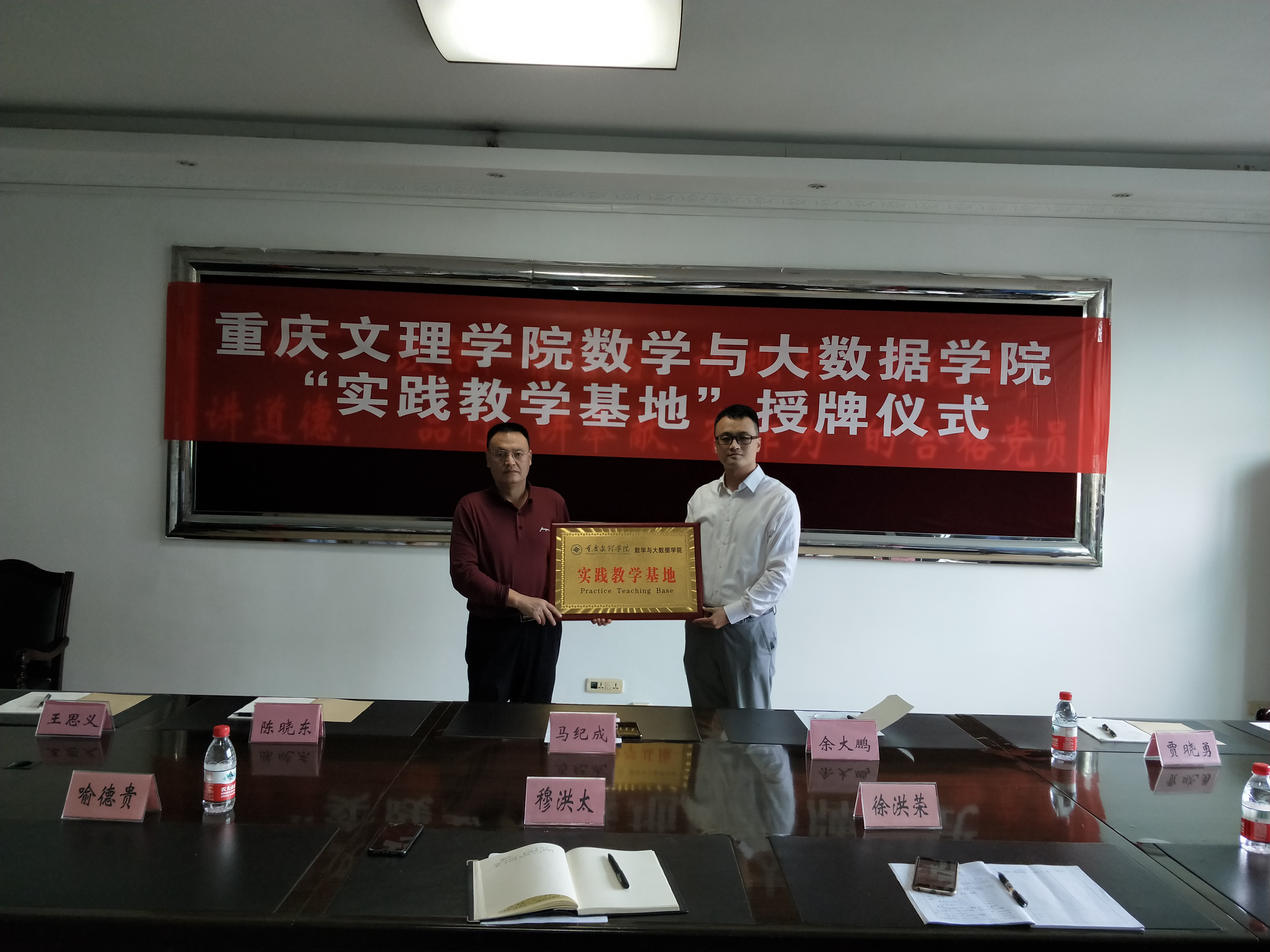 随后,双方签订《教师教育专业实践教学基地协议》,马经理向太阳成集团tyc151cc附属中公司授“实践教学基地”牌匾,双方合影留念。