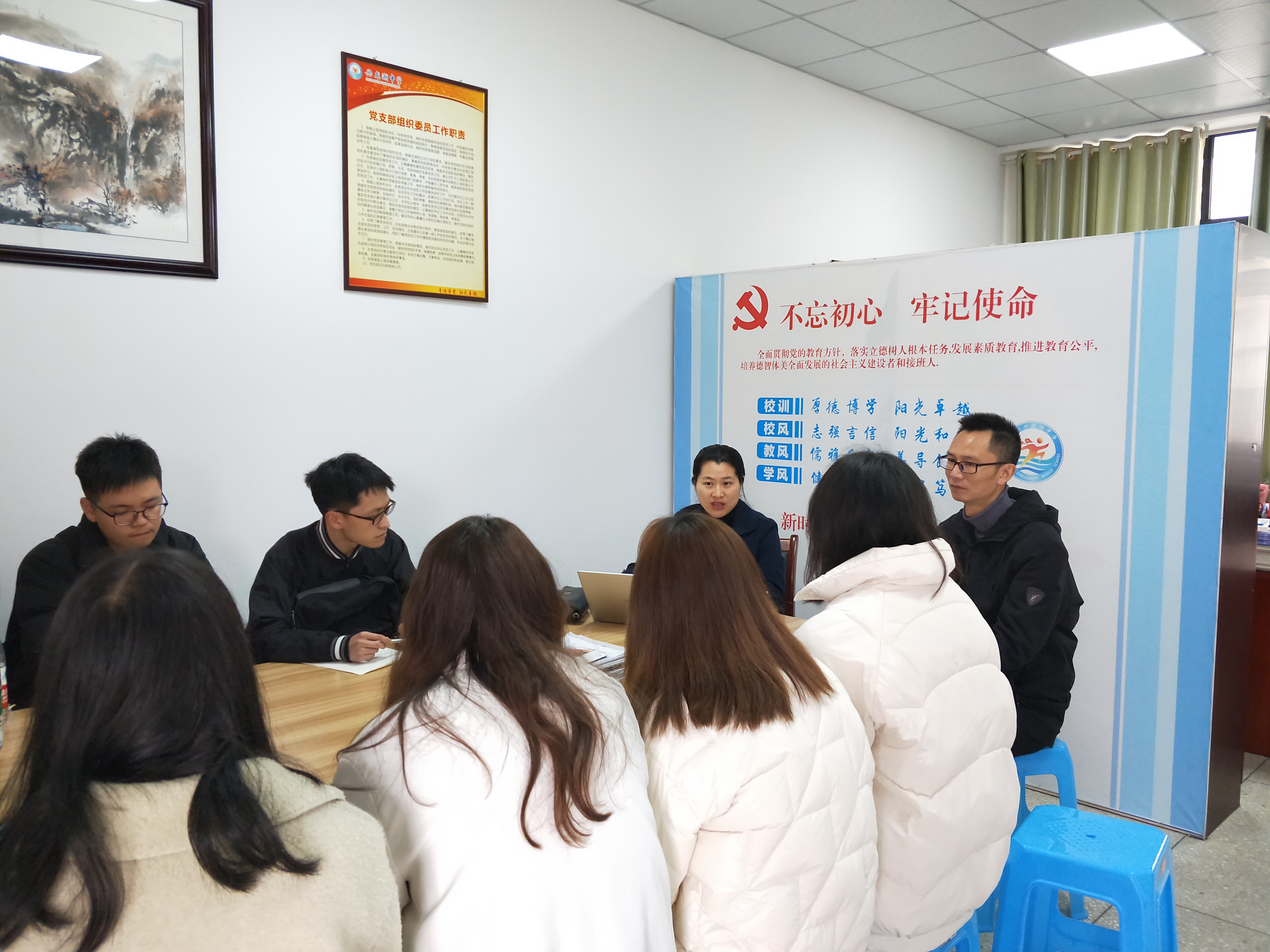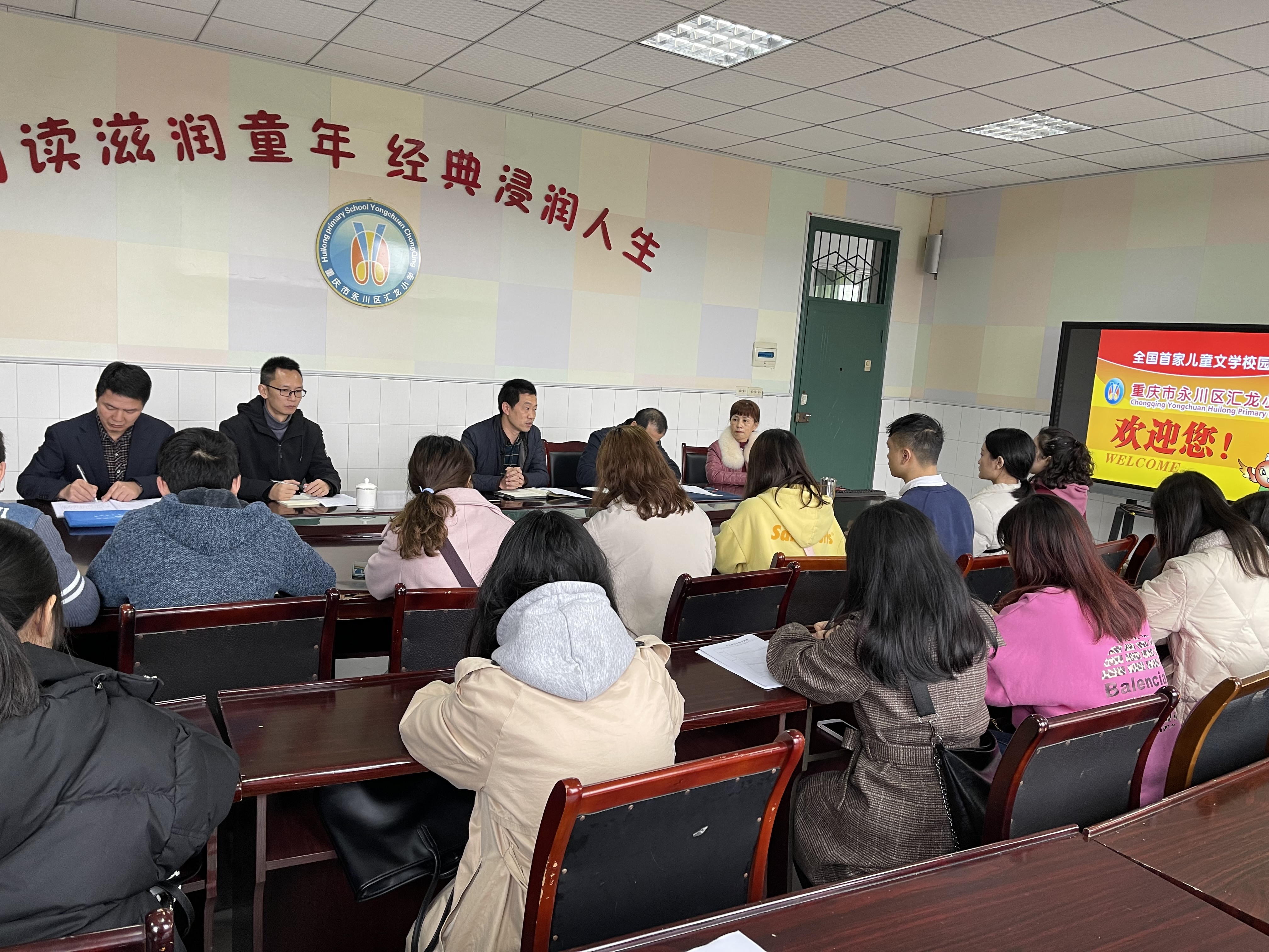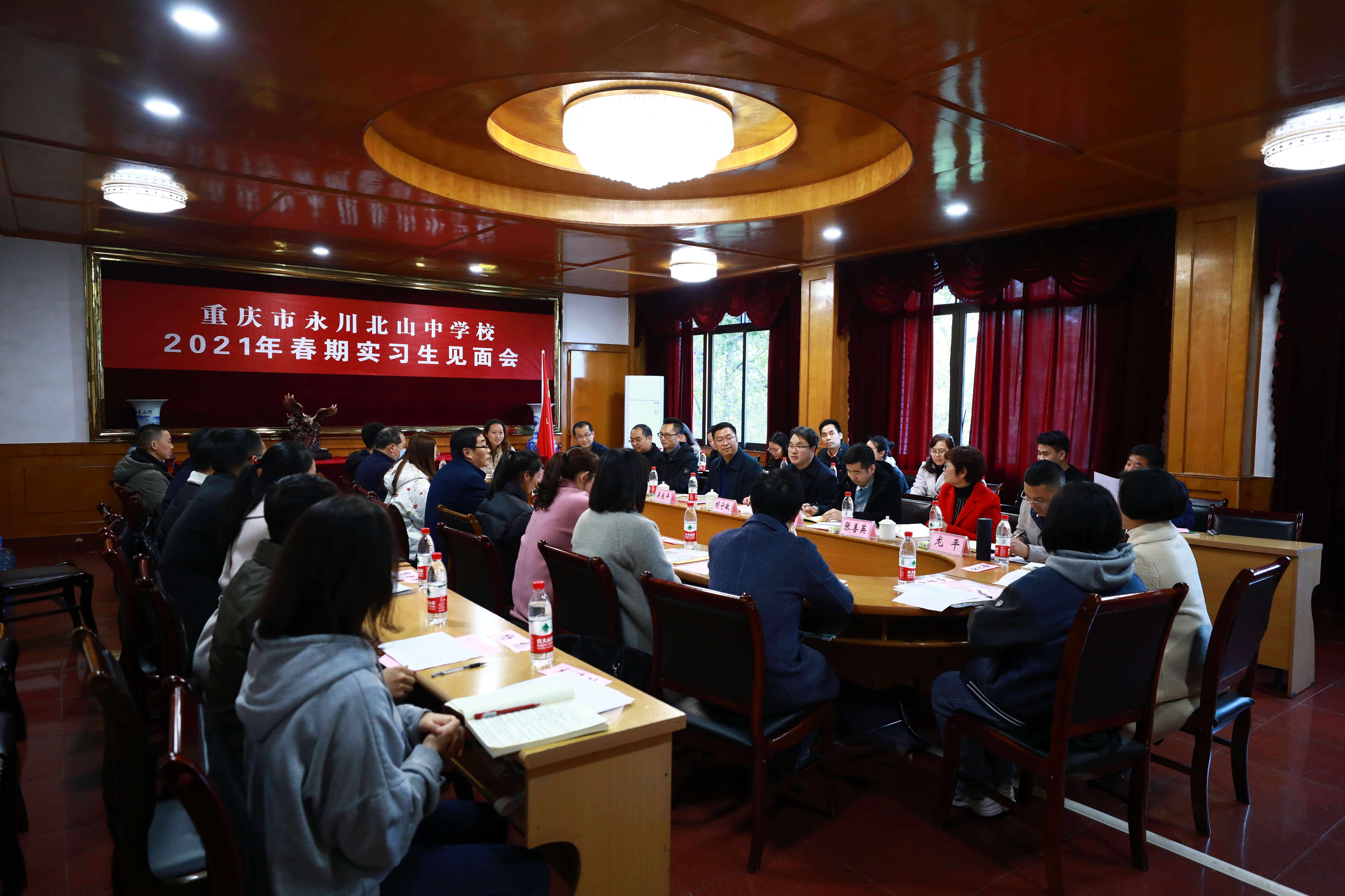 2021年 3月8日至9日,公司2017级数学与应用数学(师范)专业考研后教育实习师生见面会分别在永川区汇龙小学、太阳成集团tyc151cc附属中学、兴龙湖中学、永川北山中学进行,参与师生见面会的有永川区中小学实习公司的领导、公司副经理陈晓东、教学办主任罗章涛、实习指导教师付天贵及2017级数学与应用数学(师范)专业40名实习员工。