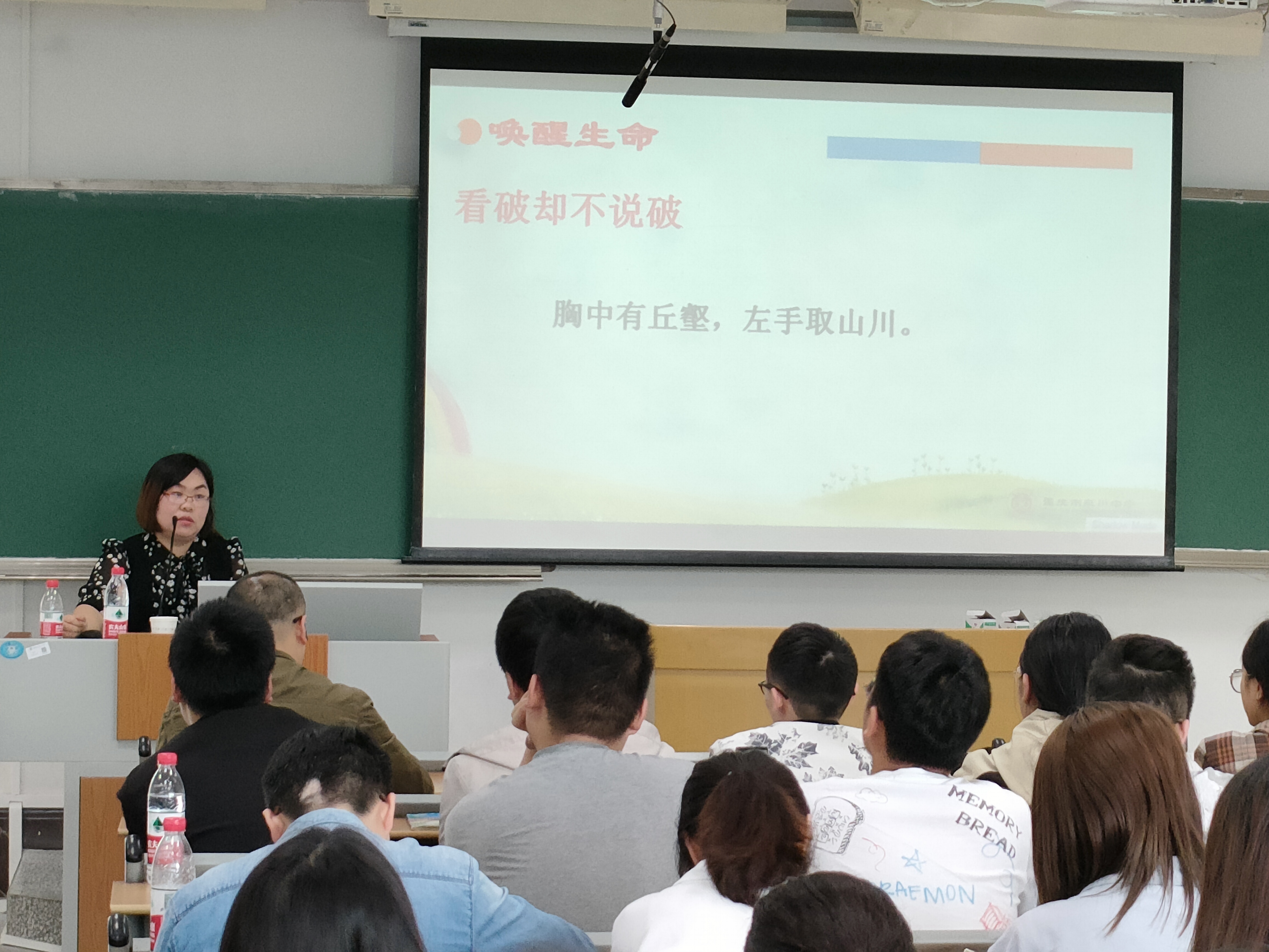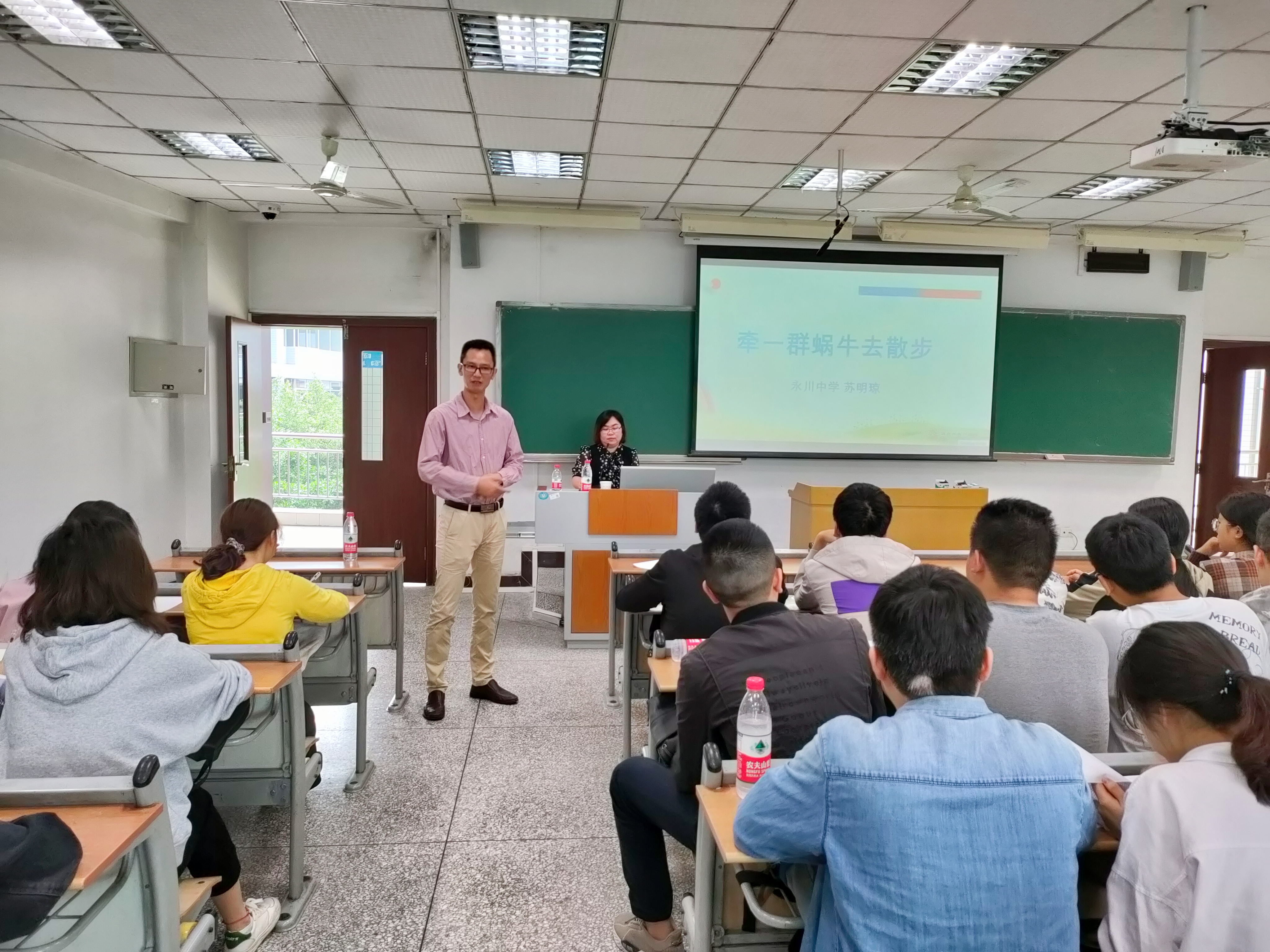 讲座开始,苏老师首先带领同学们走进了自己的老员工活,渐渐引入主题“牵一群蜗牛去散步”。然后,介绍了自己的工作经历,分享了许多在工作中遇到的问题以及如何解决的经验,在教育员工时做到不抛弃、不放弃。苏老师结合自己的班主任工作经历,对班主任工作进行了角色定位:班主任是专注于陪跑的人,是以生命唤醒生命的事业,乐于做孩子的情绪垃圾桶。最后,同学们对以后工作中可能面对的问题向苏老师提出疑问,苏老师结合自身经验针对性地进行了解答。
