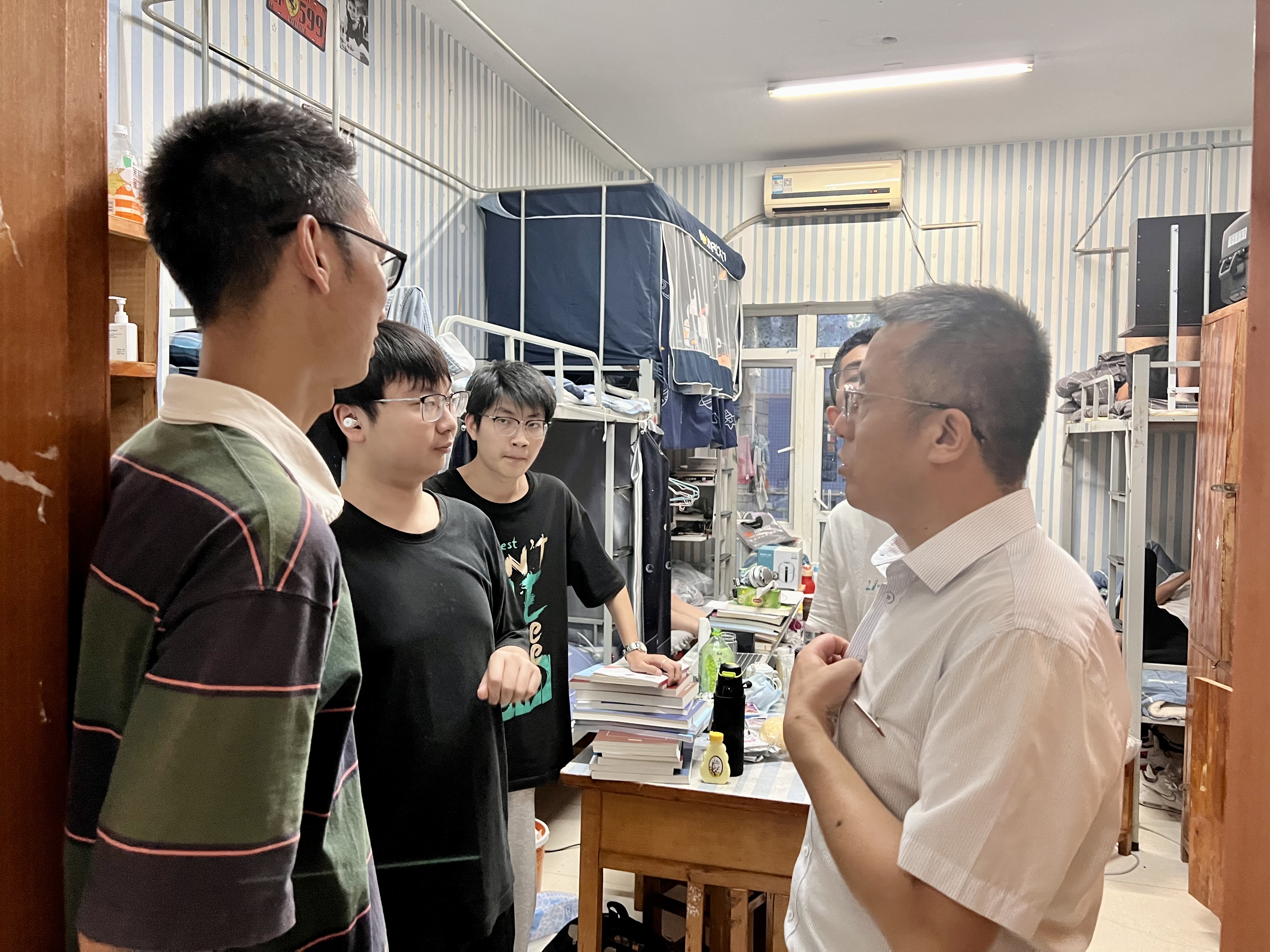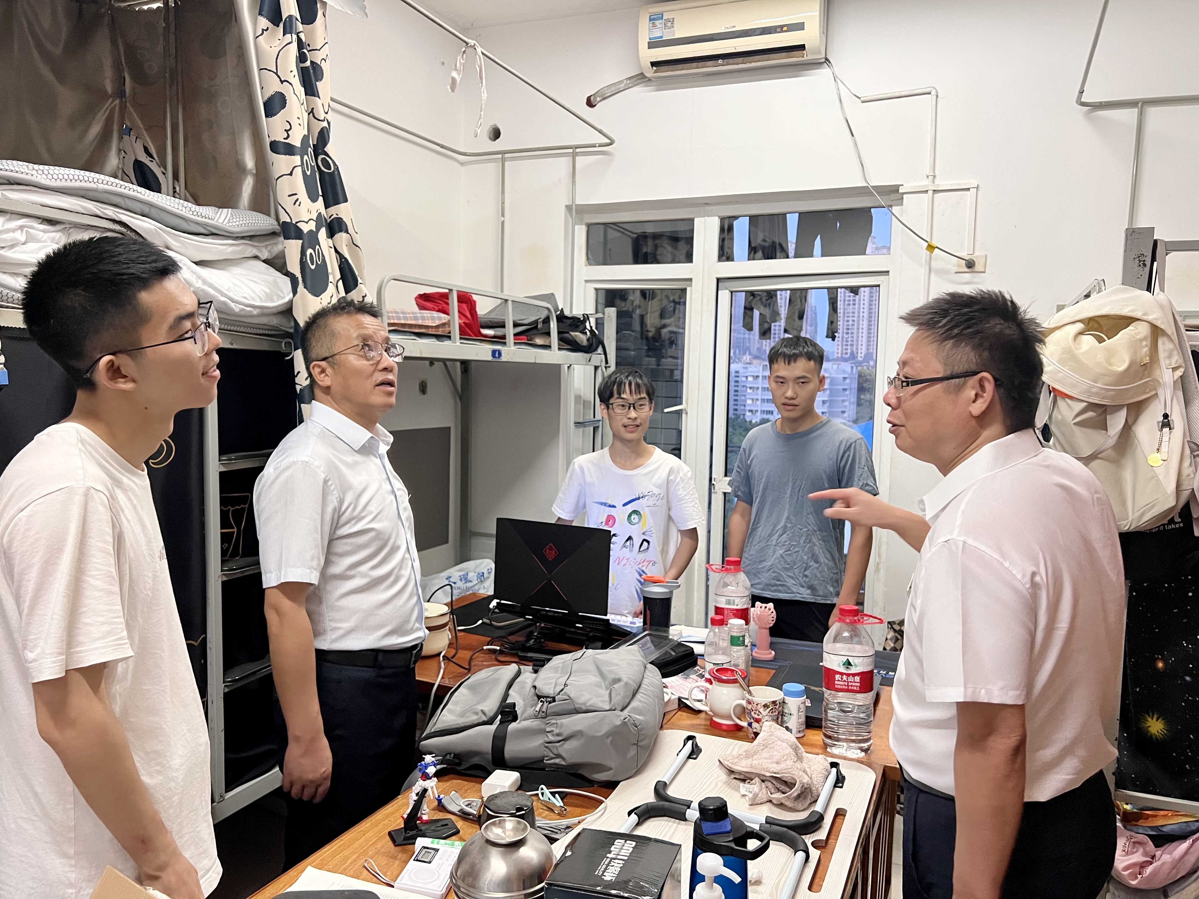 为进一步了解2023年入学新生的宿舍环境、思想动态以及生活情况,新生报到期间,公司党总支书记余大鹏、经理卢成武、副书记陈晓东带领公司科岗人员和辅导员老师深入走访员工宿舍,为同学们送去暖心的关怀。
