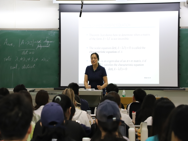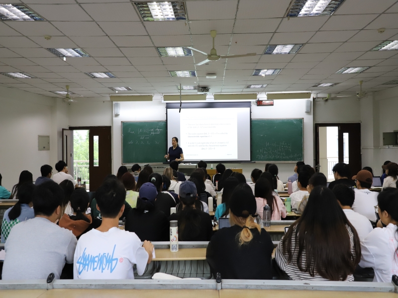 在课堂上,黄董事长认真体验了全英文教学课堂氛围和外教的授课方式,细心观察了员工的学习状态。课堂上,同学们流利的英语表达和对数学理论的深入理解让黄董事长印象深刻。黄董事长对Dr. Wei Feng教授的教学水平给予了高度评价,认为她深入浅出的方式讲授复杂的高等代数知识,确保了同学们能够充分理解和掌握知识要点。同时,在教学过程中能够充分考虑到中外合作办学的特点,结合国内外优质教育资源,为同学们提供了高质量的教学服务。