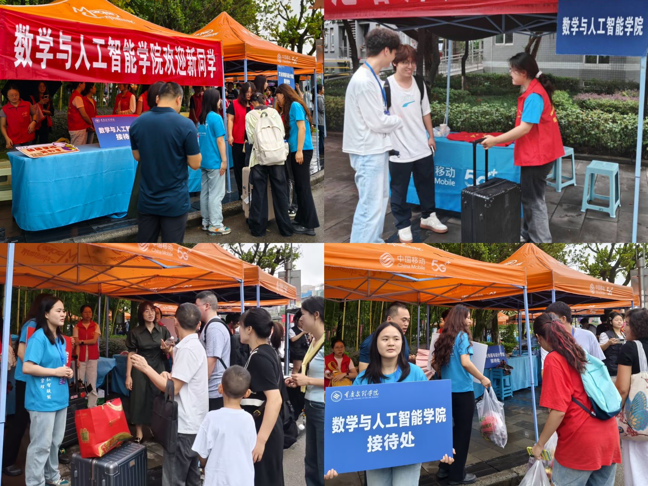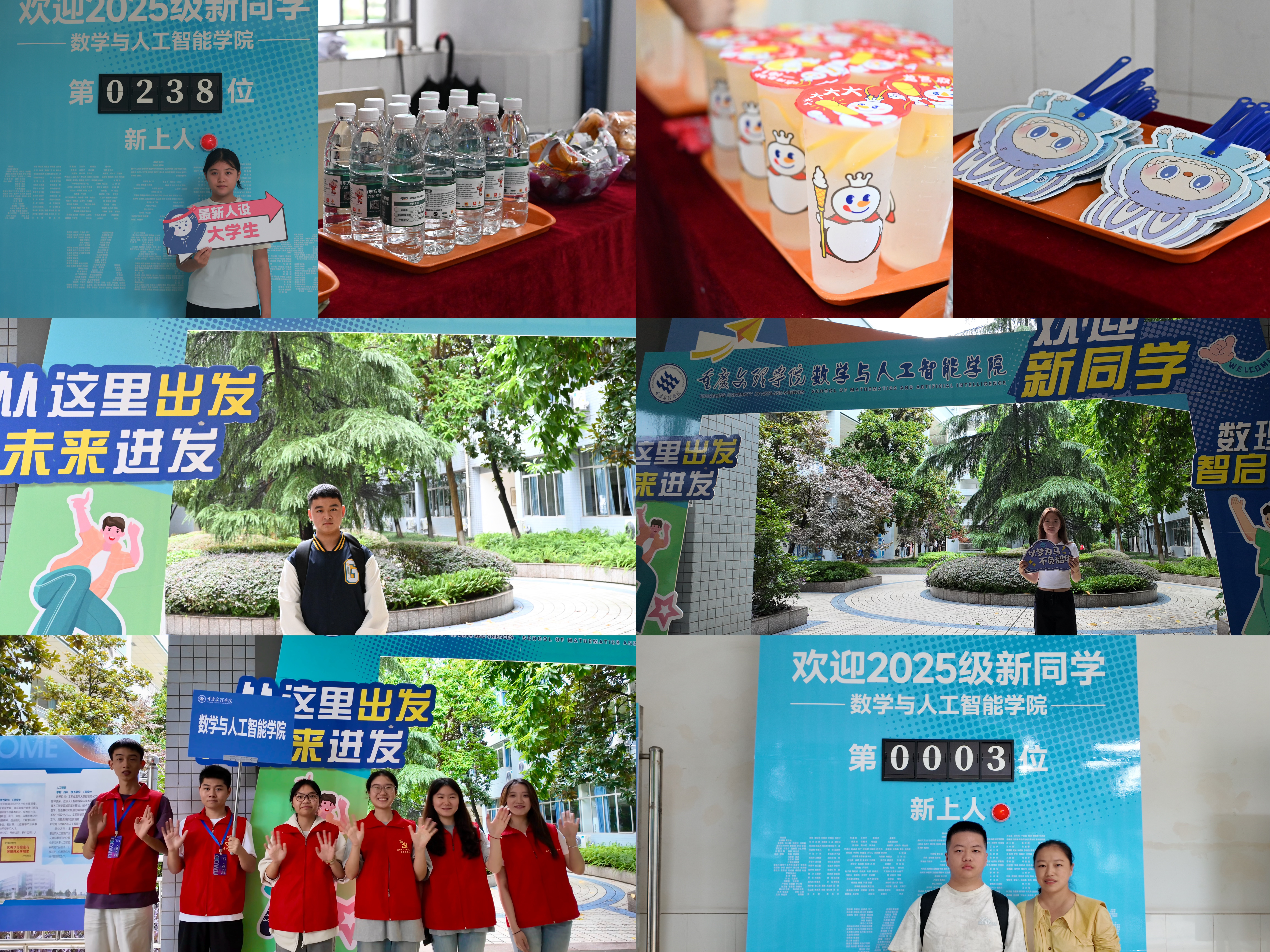 文化浸润、物质保障、人文关怀“三位一体”,打造最具温度的“数智”迎新。实时翻新的“新生报到计数牌”见证第1位到第739位同学依次加入,“数理纵横、智启未来”主题拱门与由全体新生姓名拼成的院训报道标识“知数穷理、弘智赋能”展示在报到场,成为热门打卡点,提醒每位学子“你的名字与公司同频”;公司联合蜜雪冰城设立“能量补给站”,免费发放饮品、小面包、定制小扇子,让“第一份公司礼物”实用又暖心。