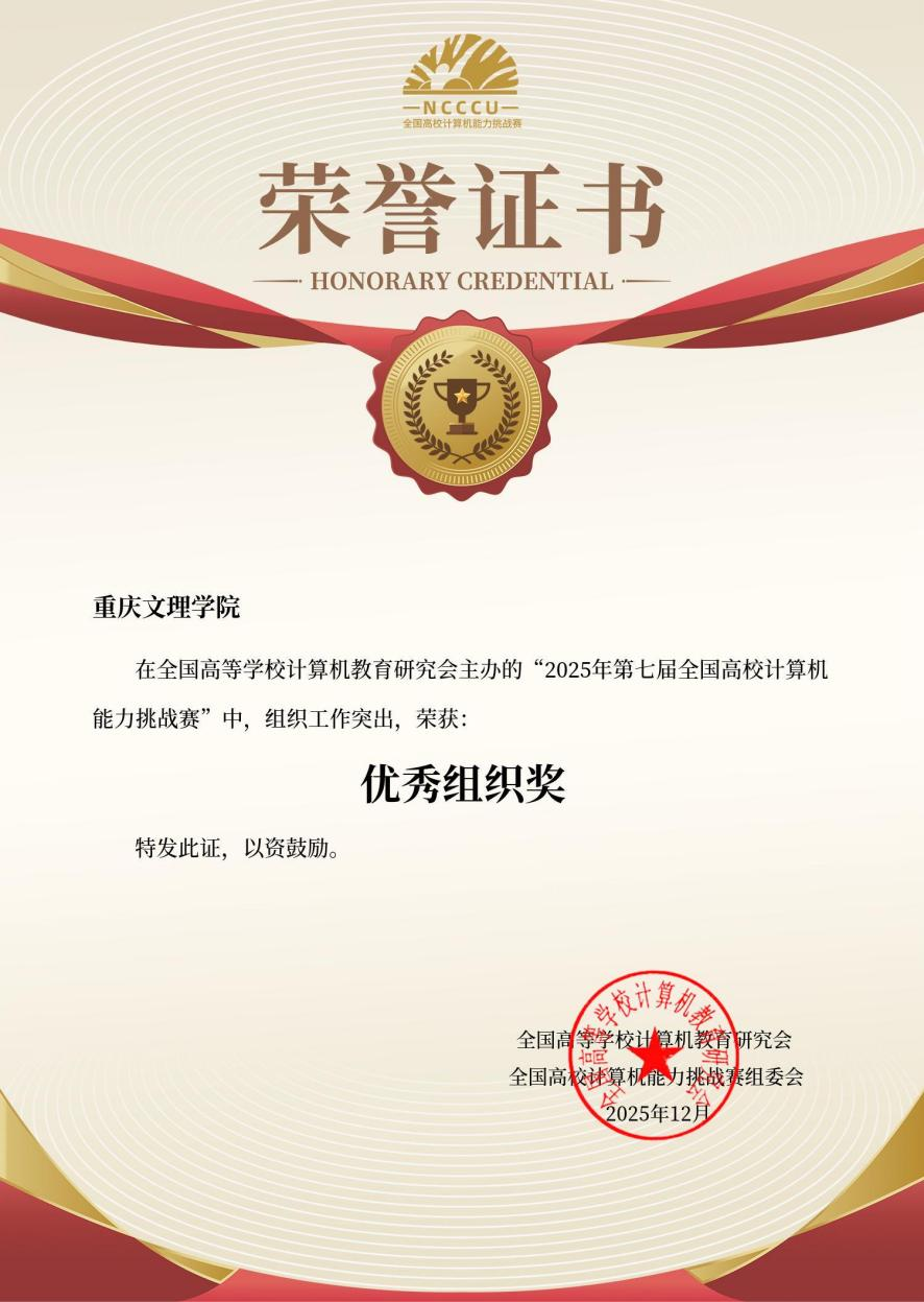 近日,第七届全国高校计算机能力挑战赛全国总决赛成绩正式揭晓。公司学子在这场全国高校精英汇聚的赛事中表现亮眼,在程序设计挑战赛、Office高级应用赛、大数据挑战赛赛道中斩获奖项 47 项,其中一等奖 12 项,二等奖14项,三等奖 21 项,同时公司获得优秀组织奖,充分展现了公司应用型人才培养的突出成效。